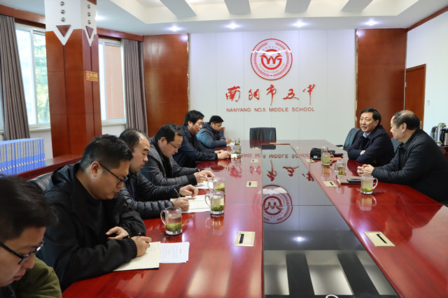 一元复始,万象更新。时值新学年开学之际,南阳市教育局党组成员、副局长乔栓旺同志于2021年2月20日下午,莅临我校调研教育教学工作。我校王超校长、苗清均副校长,高二、高三年级五位级部主任参加了座谈会。