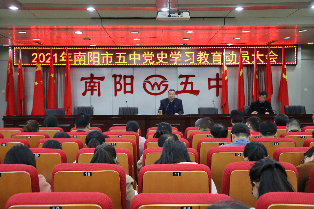 为了深入学习贯彻习近平总书记在党史学习教育动员大会上的重要讲话精神,认真贯彻落实市教育局党委的部署要求,并对我校党史学习教育进行动员部署,引导广大党员干部学史明理、学史增信、学史崇德、学史力行,从党的百年奋斗历程中汲取继续前进的智慧和力量,切实把思想和行动统一到党中央的决策部署上来,以更加昂扬的精神状态和奋斗姿态建功新时代,推动我校教育事业再创新辉煌,3月25日下午,我校在三楼小报告厅召开了南阳市五中党史学习教育动员大会,会议由我校党总支副书记高道军同志主持,学校全体领导、全体党员、教研组长、备课组长参加了会议。
