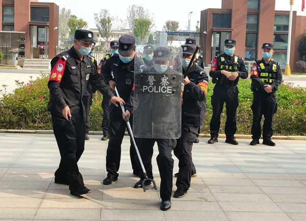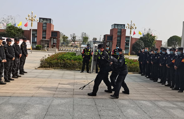 为进一步加强学校安保队伍建设,切实提高学校安保队伍的业务能力和技能水平,筑牢校园安全防线,10月28日上午九点,我校特邀新区特警支队三大队王文方队长带领8名特警来校进行反恐防暴培训。我校高一年级主管校长刘玉茏、两部主任及全体保安、教官、各处室老师参加了本次培训。