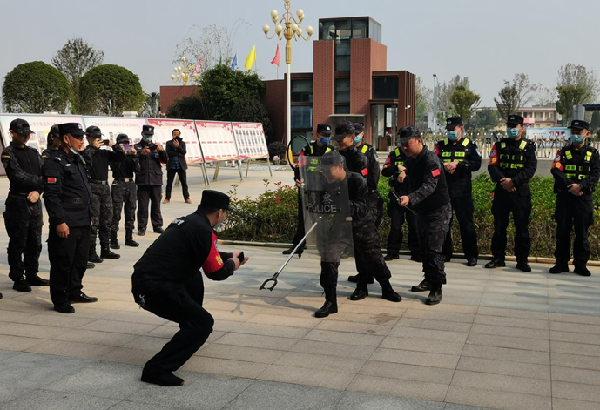 然后,我校保安、教官依次进行了现场演练。