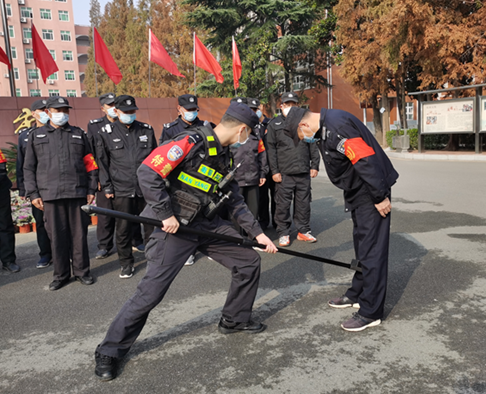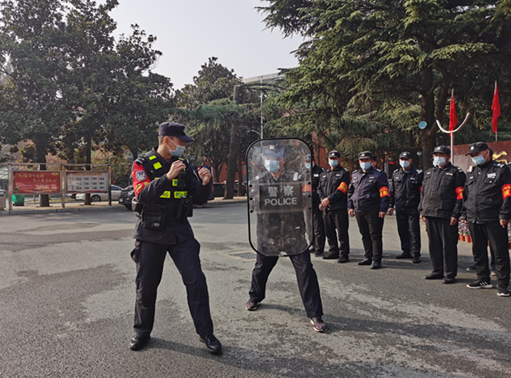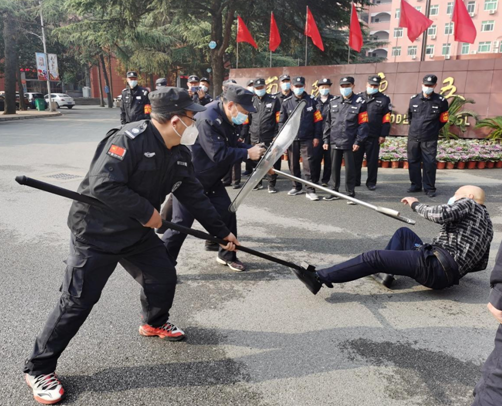 为了切实强化校园安保工作,增强安保人员“反恐防暴”安全意识,提升他们对突发性暴力事件的反应和处置能力,筑牢校园安全防线,努力实现“平安校园”的总体工作目标,11月19日上午,我校开展了校园反恐防暴演练活动。我校特邀请南阳市公安局特警支队对我校安保人员进行了反恐防暴演练培训,校长助理陈新阳、政教处各位副主任及政教老师也参加了本次演练培训。