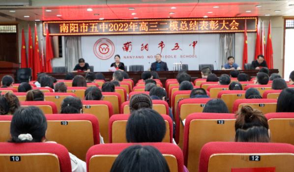 高三二模考试尘埃落定,距离高考仅一月有余,为贯彻落实市教育局高三二模分析会议精神,总结经验,弥补不足,鼓舞士气,提振精神,提高备考复习效率,增强复习备考针对性,4月29日下午,南阳市五中在三楼小报告厅召开了2022年高三二模总结表彰大会。大会由高三年级主管校长王书琴主持,王超校长出席会议,全体高三教师参会。