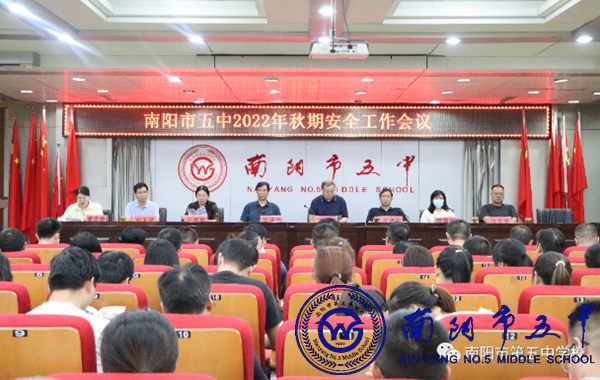 2022年9月13日下午,南阳市五中在三楼小报告厅召开了2022年秋期安全工作会议。会议由我校党总支副书记高道军同志主持,学校全体中层以上领导、全体班主任、全体政教处工作人员参加了会议,本次会议共有四项议程。