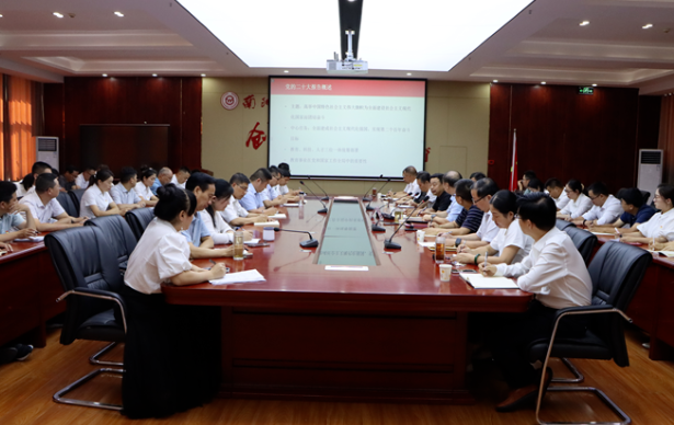 为深入学习宣传贯彻党的二十大精神,推动习近平新时代中国特色社会主义思想和党的二十大精神进校园、进课堂、进头脑,2023年7月7日下午,市教育局宣讲团成员到我校开展党的二十大精神主题宣讲活动。局党组成员、市招生考试院院长田斌出席活动,并作了题为“立德树人担使命,培根铸魂育新人——为实现教育的高质量发展不懈奋斗”的专题报告,市招办王旭忠同志到会指导。校中层以上领导及各支部委员参加了会议,校党委书记王超主持会议。