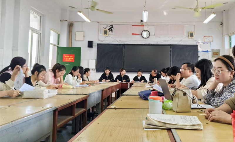 听课后,四名教师参加了语文组的教研活动。教研活动由语文组备课组长梁茜主持。教研会上,王艳辉老师介绍了本次公开课的设计思路,梁茜老师介绍了我校课堂教学指导思想:先练后讲,少讲多练。导学案设计要体现教考衔接、链接高考、总结答题思路、变式训练等内容。
