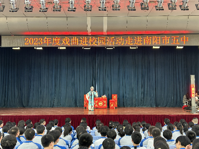 为进一步弘扬中华优秀传统文化,增强文化自信,促进戏曲传承发展,10月24日上午,由中共南阳市委宣传部、市教育局、市文化广电和旅游局、市文学艺术节联合会主办的2023年南阳市“戏曲进校园”活动在南阳市五中举行。