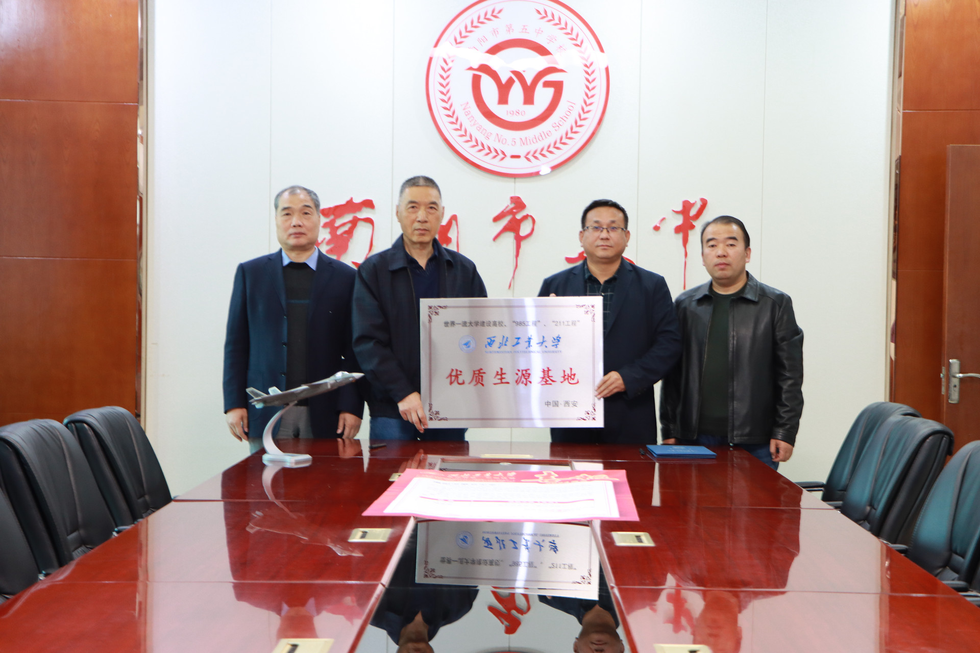 授牌仪式上,李洪潮教授为我校颁发了喜报,授予我校“优质生源基地”牌匾,并赠送我校一架精美的歼-20战斗机模型。双方希望以此次授牌为契机,拓宽两校合作渠道,创新人才培养模式,携手培养更多共同校友,为国防事业贡献更大力量。