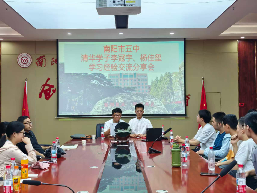 晴云轻漾,熏风无浪。7月19日的南阳,暑气蒸腾,但高温丝毫没有阻挡南阳市五中学子的求知热情。备受期待的清华学子李冠宇、杨佳玺学习经验交流分享会在九楼会议室圆满举行。