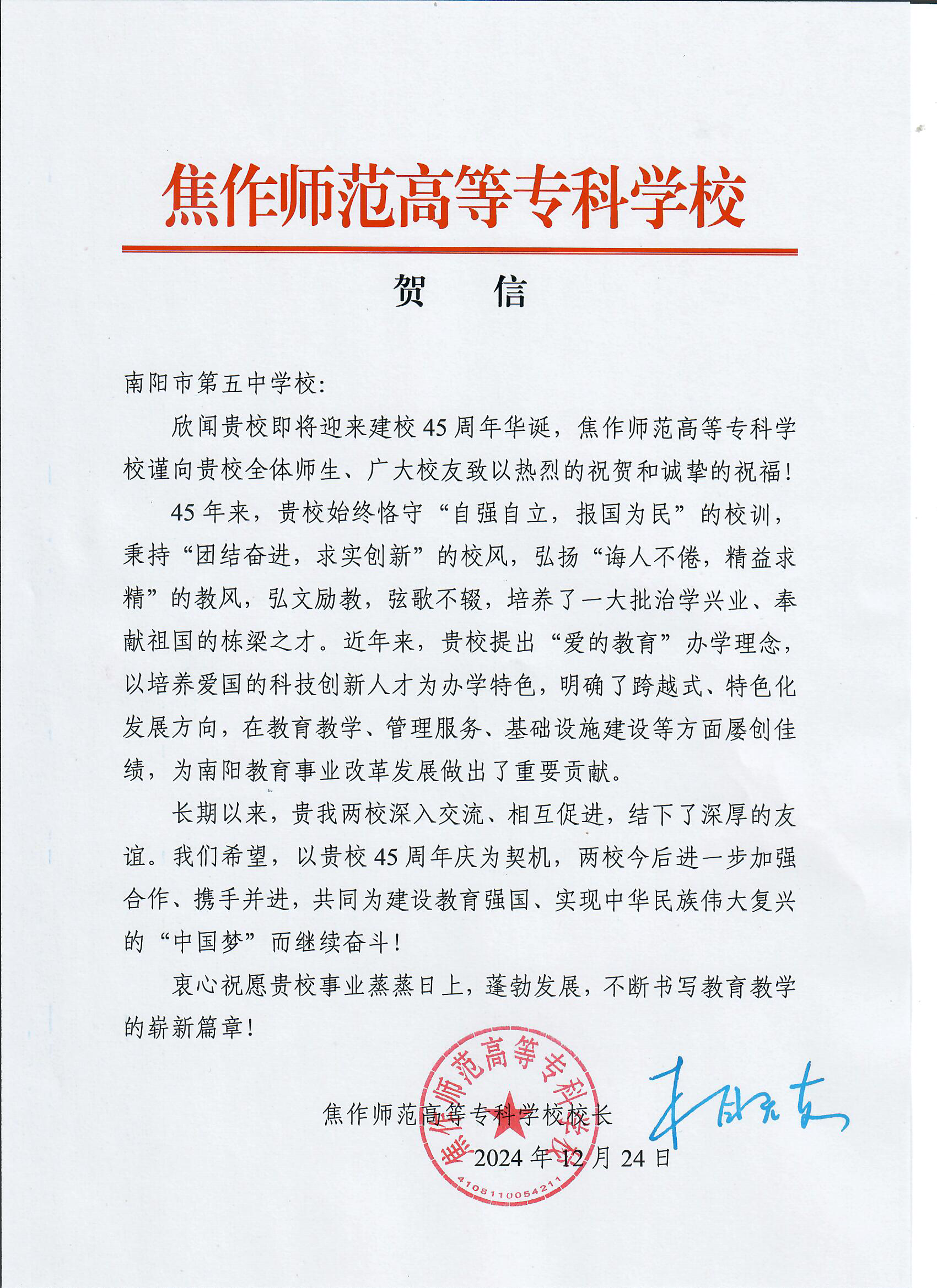 高校贺信