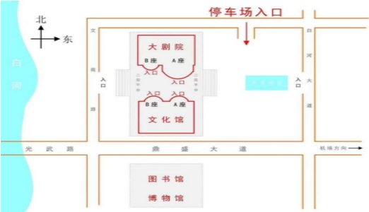 2.大巴车停放在地面车位,个人车辆按照车位一律停放在地下车库(位于大剧院北侧,详见停车示意图),电动自行车停放在路边道牙上。