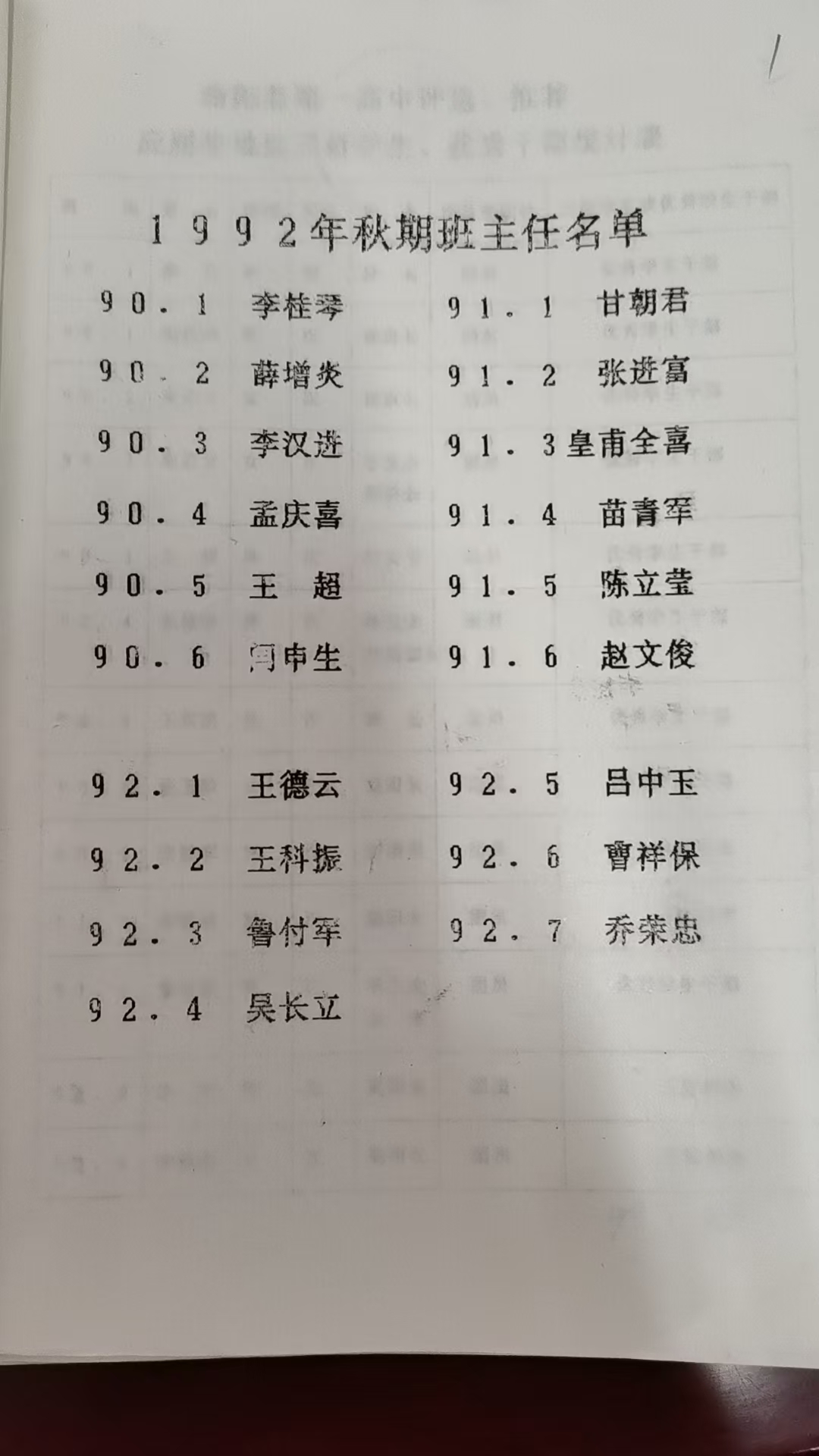 这张1992年的班主任名单,上面大部分班主任已经退休,你认识几个?