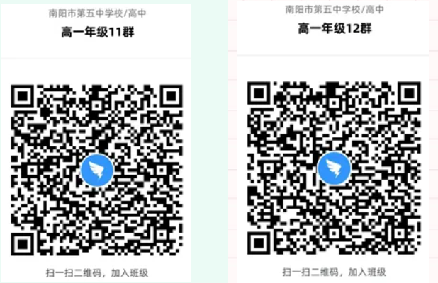 二、注册完成后,请扫描二维码进入南阳市五中2021级高一新生钉钉群,做好线上学习的准备。请加入其中一个钉钉群即可,不要重复加入。